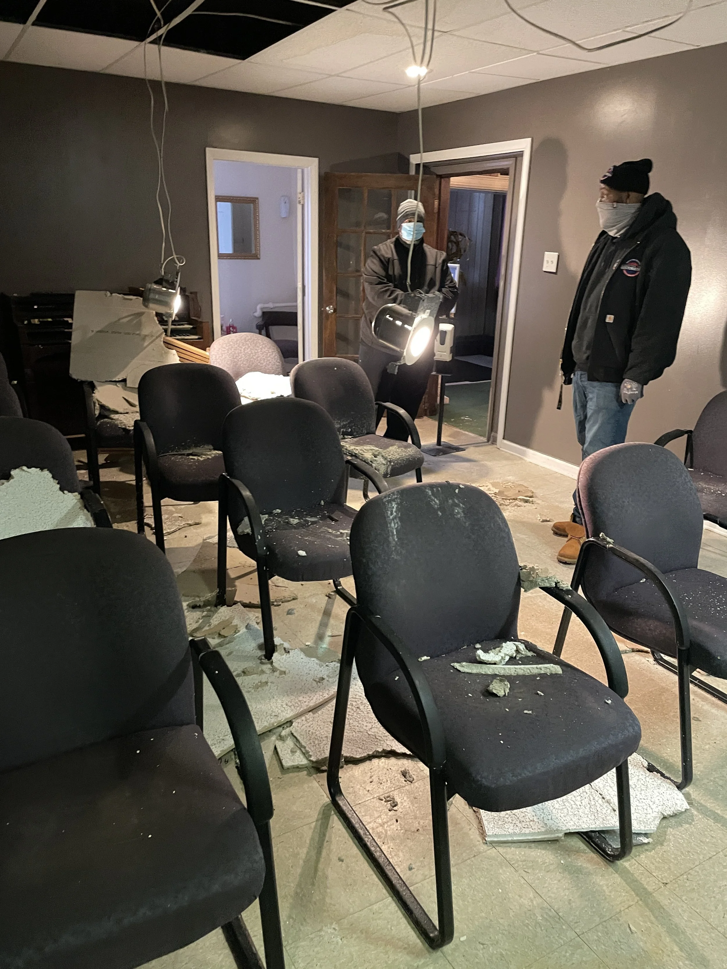 This beautiful church structure was faced with a major pipe burst incident in the middle of winter. When we arrived on-site the ceiling had caved in and the hardwood flooring on all levels was swollen beyond repair. We mitigated this property for almost one full week. Rest assure we were able to save quite a bit of materials using dehumidification coupled with the correct amounts of air movement.